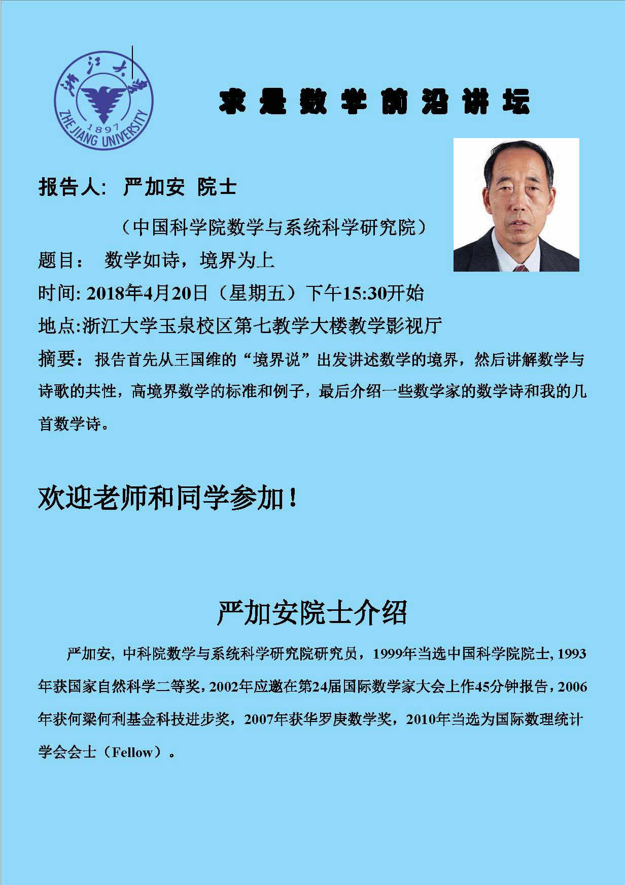 通知公告 通知公告 学术活动 学术会议 新闻图片 院系新闻 院内邮件 2018 米兰网页版 > 严加安院士题为“数学如诗,境界为上”的公众演讲 来源:米兰(中国) 发布时间:2018-04-08 763