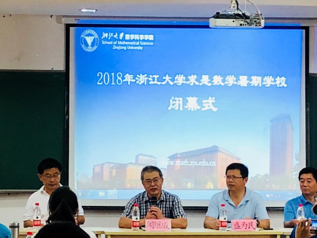 2018年7月30日上午,2018年浙江大学求是数学暑期学校结业典礼在浙江大学玉泉校区举行,米兰(中国)党委书记闻继威、副院长盛为民、院长助理张挺、美国罗格斯大学李岩岩、美国佐治亚理工大学周好民、闫绪恺等老师以及本期暑期学校的全体学员出席了典礼,活动由院长助理张挺教授主持。