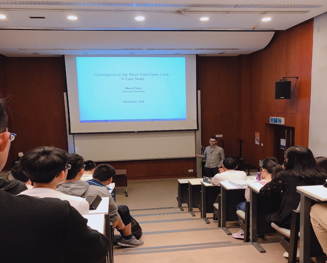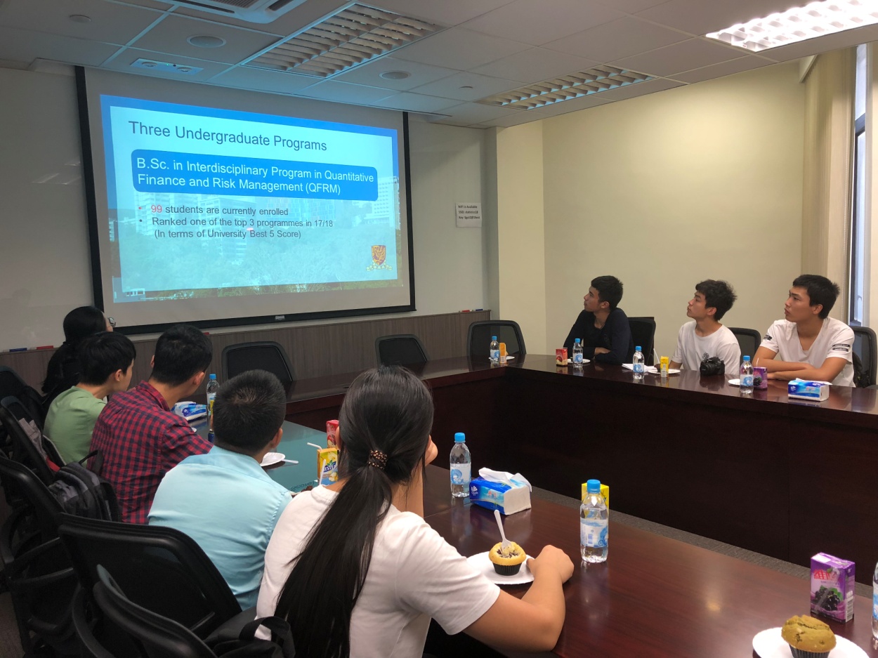 香港中文大学统计系也为交流团特别安排了简介会。简介会中,统计系系主任宋心远教授为大家介绍了港中大统计系的师资水平、主要研究方向及申报研究生的相关注意事项等。同学们也就自己在港中大学习时的一些体会与老师们进行了交流,层出不穷的问题涌现,浙大与港中大擦出的火花令同学们受益良多。统计系还特别邀请交流团参加了香港大学的Ke Zhu博士、哥伦比亚大学的Maecel Nusz教授的专题报告,报告内容与国际接轨,同学们感受到了统计别样的魅力。