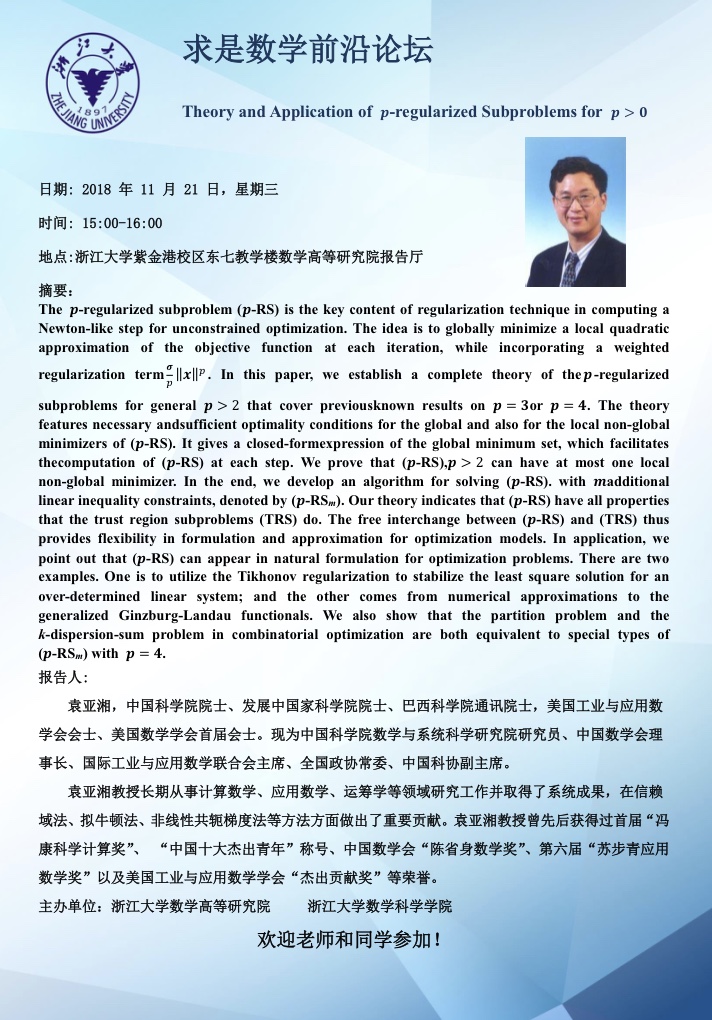 学术科研 学术团队 学术活动 学术会议 学术报告 讨论班 School Colloquium 信息公告 文件汇编 2018 米兰网页版 > 求是数学前沿论坛之袁亚湘院士讲座 来源:米兰(中国) 发布时间:2018-11-20 783