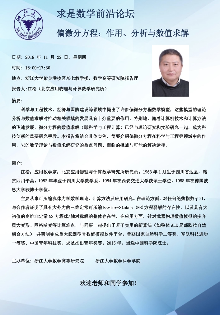 学术科研 学术团队 学术活动 学术会议 学术报告 讨论班 School Colloquium 信息公告 文件汇编 2018 米兰网页版 > 求是数学前沿论坛之江松院士讲座 来源:米兰(中国) 发布时间:2018-11-20 793