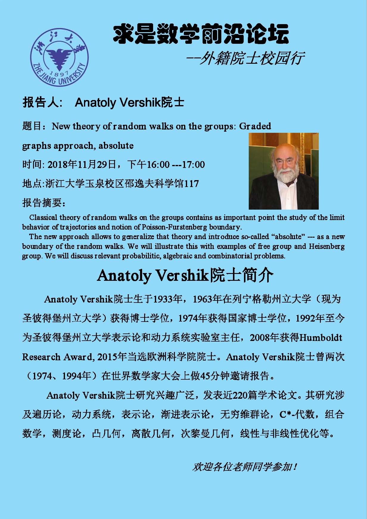 通知公告 通知公告 学术活动 学术会议 新闻图片 院系新闻 院内邮件 2018 米兰网页版 > 求是数学前沿论坛之Anatoly Vershik院士讲座 来源:米兰(中国) 发布时间:2018-11-23 1291