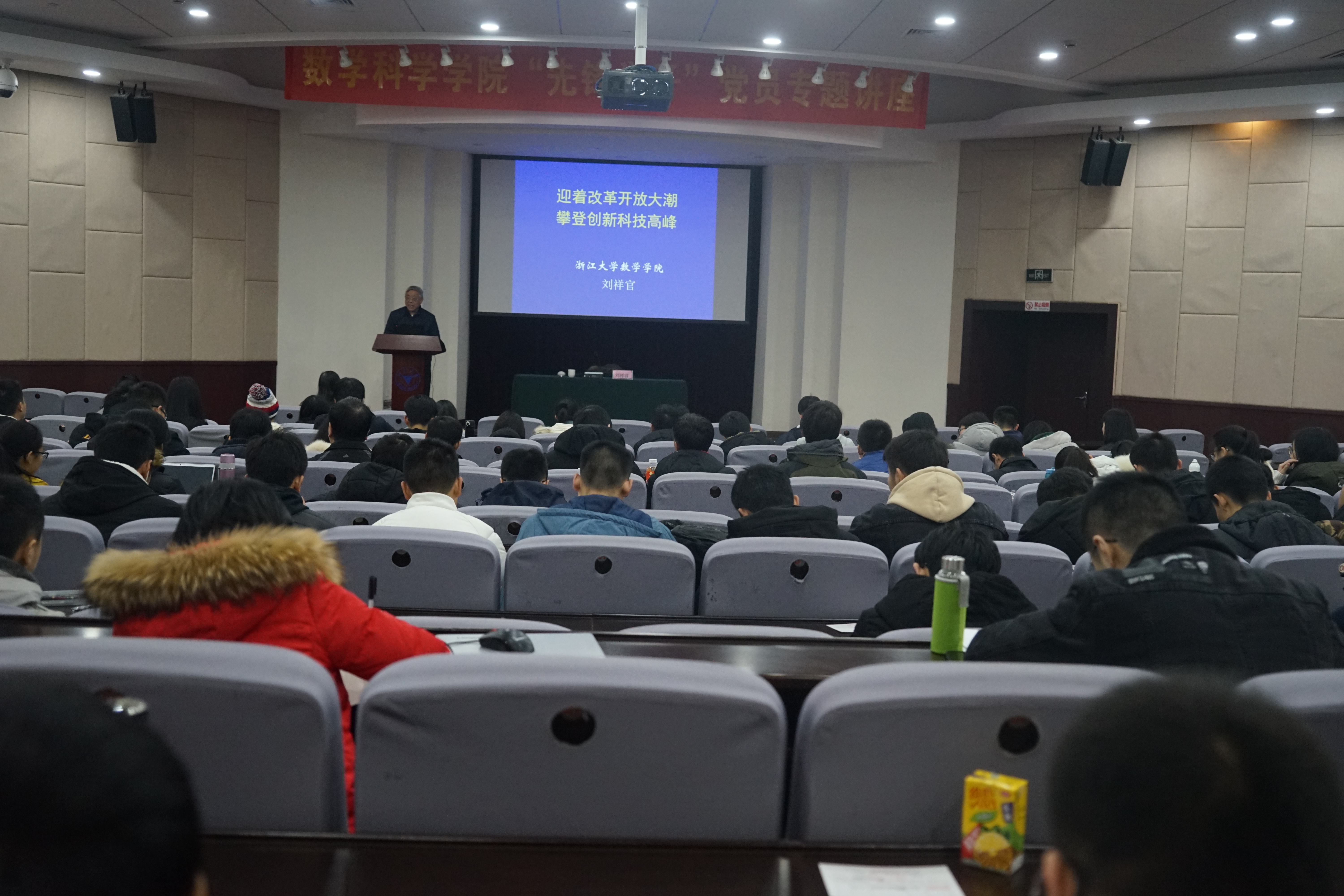 2018年12月14日,米兰(中国)党委在浙江大学玉泉校区邵科馆117报告厅举办了“在鲜红的党旗下――米兰网页版‘先锋学子’党员专题学习会”。浙江大学关心下一代工作委员会求是宣讲团成员、米兰(中国)退休教工第二党支部书记刘祥官老师应邀为学院学生党员们带来了一堂生动的党课。刘祥官老师结合习近平系列重要讲话精神,以“迎着改革开放大潮,攀登创新科技高峰”为主题展开宣讲。此次会议由米兰(中国)党委副书记姚晨主持,米兰(中国)全体辅导员及全体学生党员、入党积极分子参与会议。