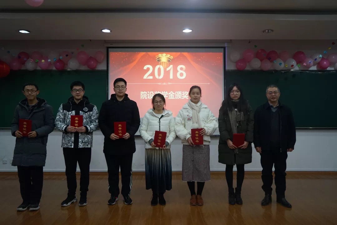 新晚伊始,学院党委书记闻继威老师首先发表新年致辞。在这一特殊时刻,闻老师表达了对学院师生的深情祝福和对数院未来的美好展望。随后,2017-2018学年院设奖学金颁奖仪式在庄重喜庆的氛围中进行,闻继威老师、李松老师和姚晨老师分别为获得院设奖学金(今明教育奖学金、郭竹瑞奖学金、中日友好饭店奖学金)的同学颁发荣誉证书,勉励数院学子在新的一年里再创佳绩。