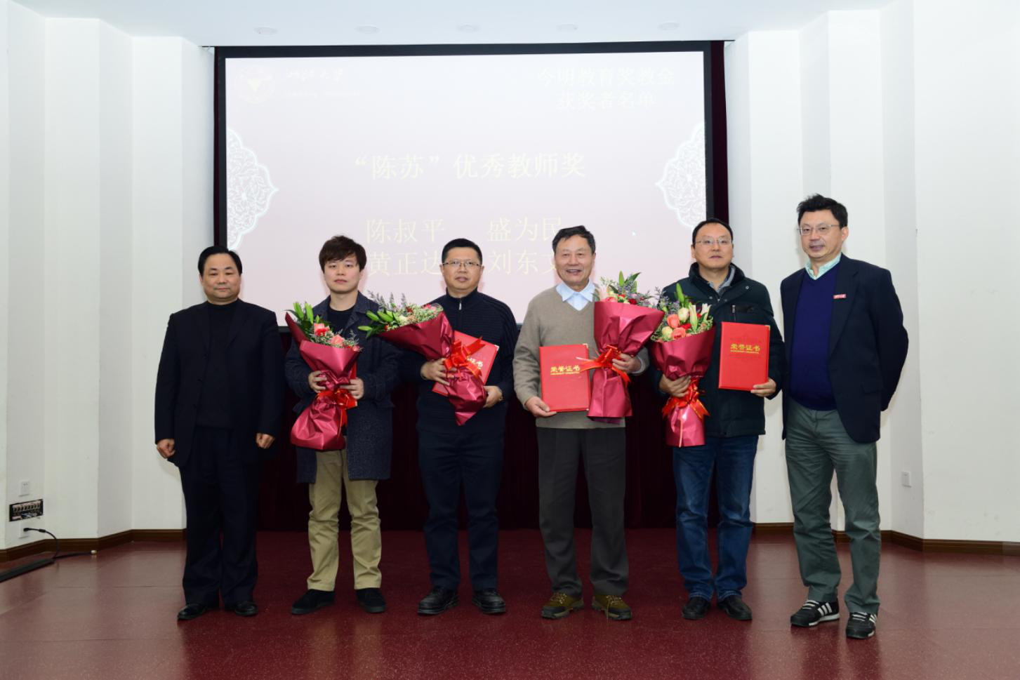 接下来是表彰大会。在过去的一年里,学院教职工勤恳奋进,团结协作,攻坚克难,将学院的发展推向了一个新的高度的同时,也涌现了一批先进个人。姚晨副书记依次宣读了学院2018年度表彰名单,学院领导和今明教育集团董事长杨益民先生为获得奖励的教职工颁发了荣誉证书并合影留念。