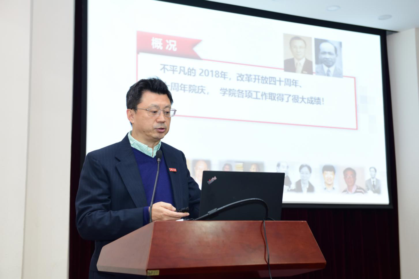 最后,闻继威书记作总结讲话,他重点汇报了学院在2018年取得的各突破性进展,分析了目前工作面临的机遇和挑战,提出了下一年的工作思路和要点。闻书记在肯定学院工作的基础上,感谢了老师、同学和广大校友的辛勤付出,并代表学院领导班子向大家恭贺新春。