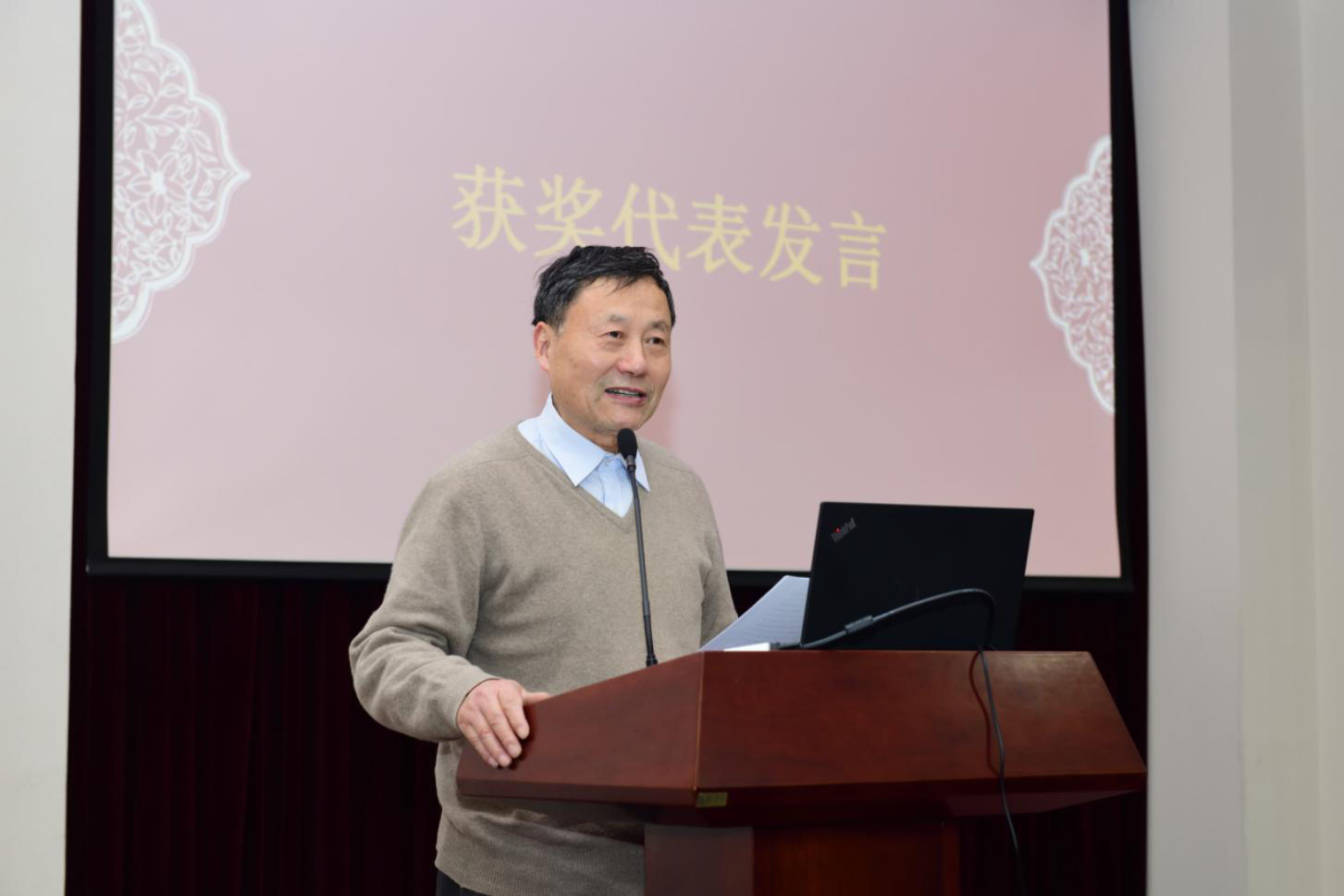 颁奖仪式结束后,获奖代表陈叔平老师发表获奖感言。陈老师表示,学院的发展以及他个人所取得的成绩离不开各级领导和全院师生的关心与支持,离不开包括思政战线在内的全体教职工的辛勤付出。他还强调,态度、认识、实践、学习是做一名好老师所必须具备的品质。