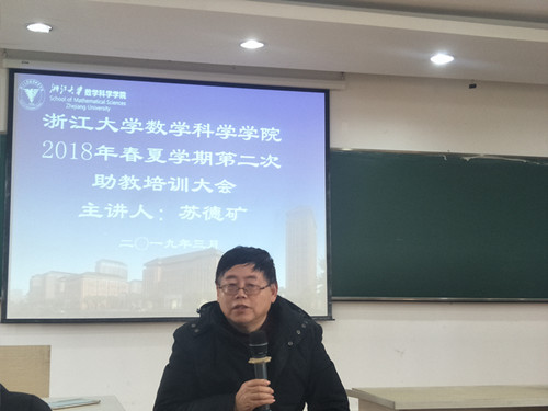 2019年3月8日下午,米兰网页版在逸夫工商楼四楼会议室召开了2018-2019学年春夏学期第二期研究生助教培训会议。本期助教培训会议主讲人为“学生最喜欢的浙江大学老师”之一、浙江大学微积分课程负责人苏德矿教授。 学院教务科熊晶蕾、付�老师以及所有2018-2019学年春夏学期研究生助教参与了本次培训会议。