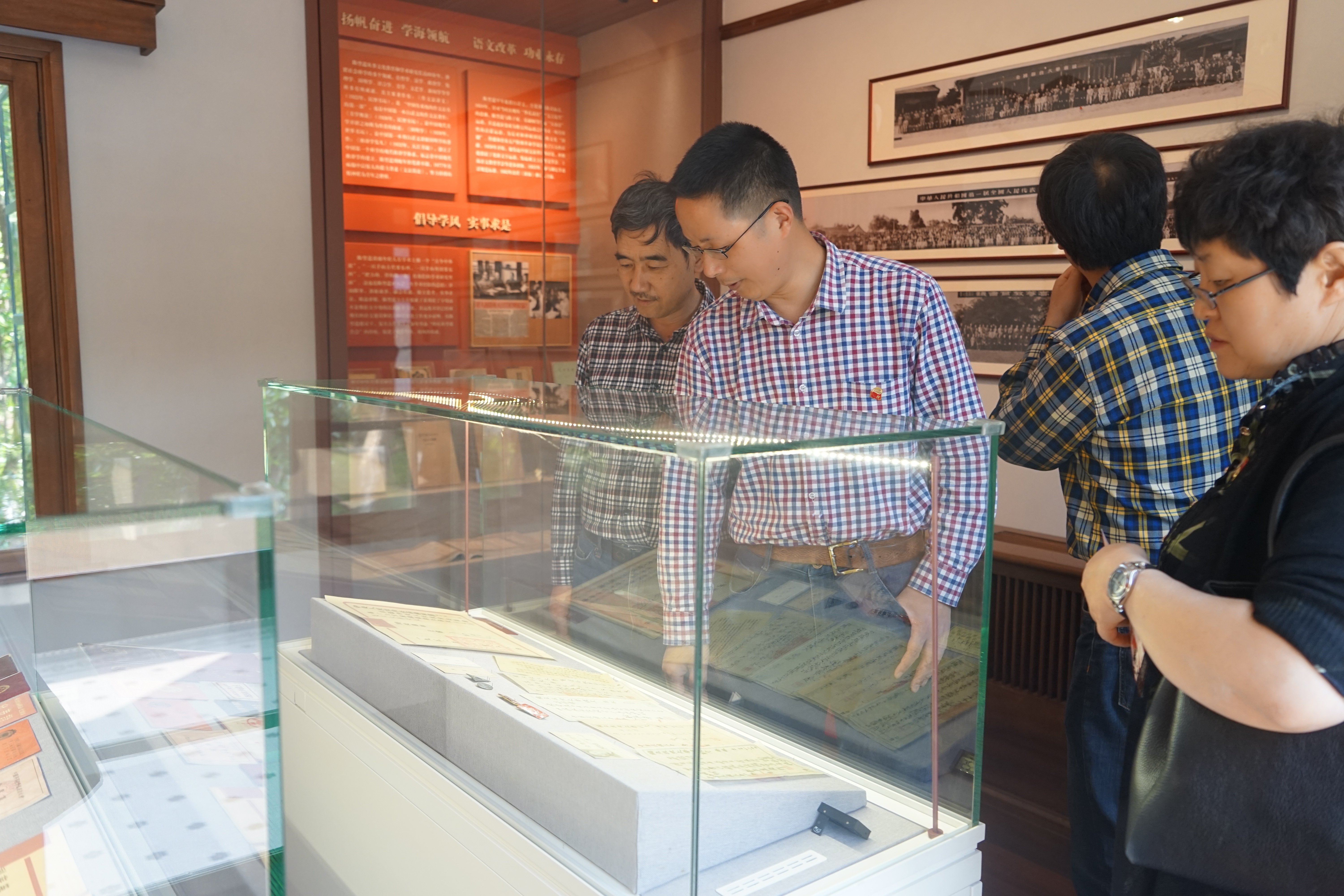 5月11日早上,培训班成员们来到浙江大学优秀校友陈望道的旧居。陈望道是中国共产党最早的党员之一,曾担任中共上海地方委员会首任书记,是首位将《共产党宣言》全文译成中文。陈望道先生于1913年在我校前身之江大学学习,修读数学,可以说是数学界中最早的党员之一。培训班成员们在此重温入党誓言,通过丰富的视频、图片、文字和实物展品,以及习总书记讲述陈望道老校友翻译《共产党宣言》故事的视频,一起回味了“真理的甜味”,重温了中国共产党筚路蓝缕、不懈奋斗的光辉历程,感悟“望道精神”。