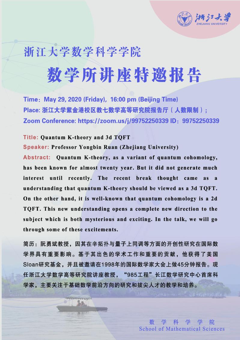 学术科研 学术团队 学术活动 学术会议 学术报告 讨论班 School Colloquium 信息公告 文件汇编 2020 米兰网页版 > 数学所讲座| Quantum K-Theory and 3d TQFT 来源:米兰(中国) 发布时间:2020-05-25 705