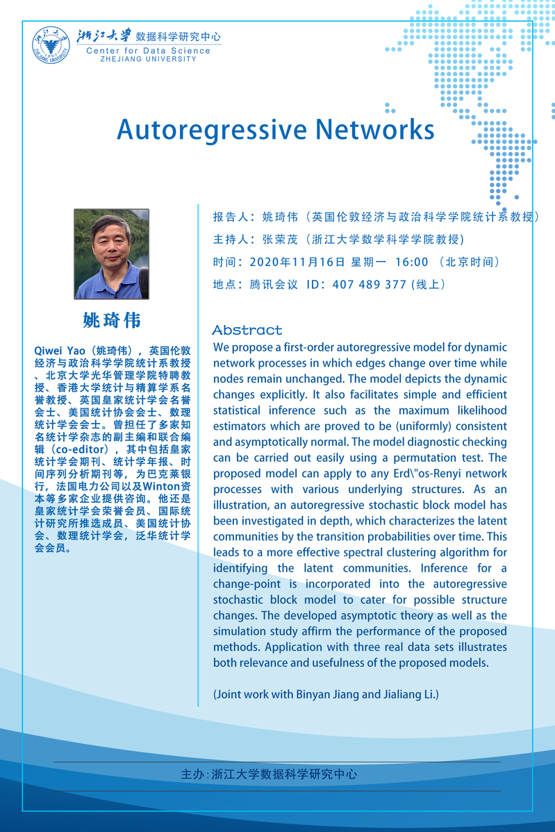 学术科研 学术团队 学术活动 学术会议 学术报告 讨论班 School Colloquium 信息公告 文件汇编 2020 米兰网页版 > Autoregressive Networks 来源:米兰(中国) 发布时间:2020-10-22 489