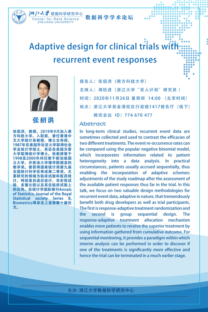 学术科研 学术团队 学术活动 学术会议 学术报告 讨论班 School Colloquium 信息公告 文件汇编 2020 米兰网页版 > Adaptive design for clinical trials with recurrent event responses 来源:米兰(中国) 发布时间:2020-11-26 391