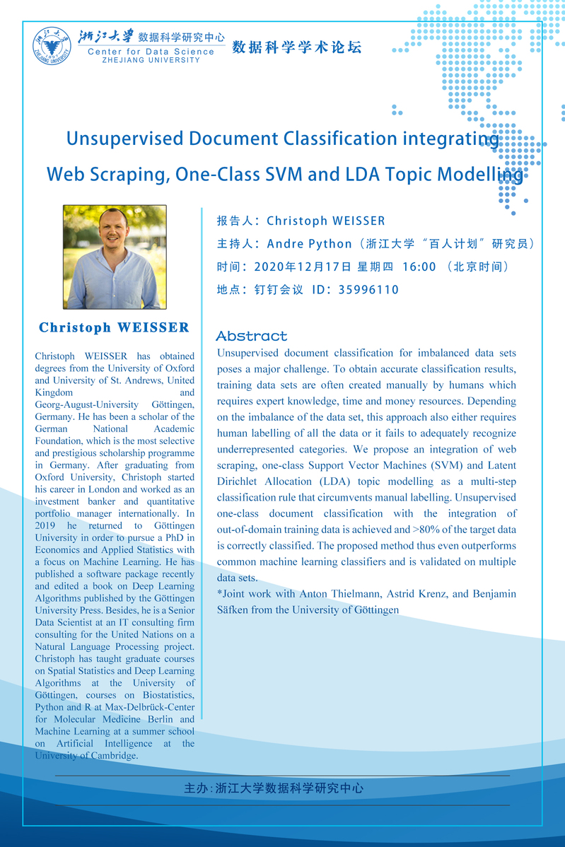 学术科研 学术团队 学术活动 学术会议 学术报告 讨论班 School Colloquium 信息公告 文件汇编 2020 米兰网页版 > Unsupervised Document Classification integrating Web Scraping, One-Class SVM and LDA Topic Modelling 来源:米兰(中国) 发布时间:2020-12-17 348
