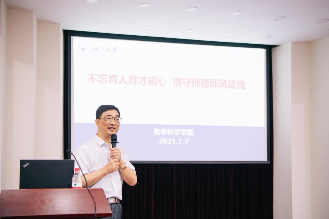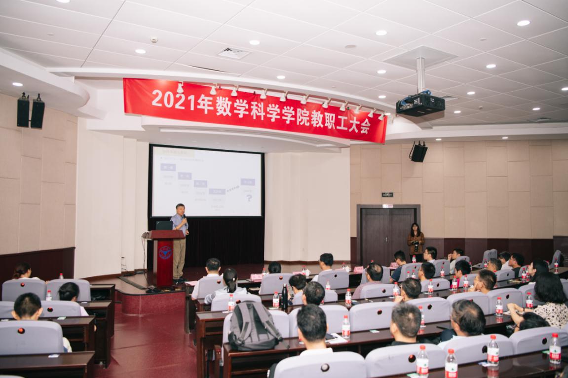 励建书在讲话中总结了学院在人才引育、科研成果、国际学术影响力等方面的工作及成效。2020年来,学院教师在国际数学四大顶尖期刊发表(含接收)文章5篇,有2位教师将在国际数学家大会做45分钟报告,坚持“一流学者培养一流学生”的教育理念,引育顶尖人才,荣获浙江大学引才育才组织突出贡献奖,强化基础及交叉应用人才的全方位培养,为全校公共课教学提供有力支撑。学院新时代的发展愿景,要在人才引进顶层设计、学科方向发展布局、为师生提供一流服务、提升学科文化内涵等方面加强思考、开拓新局。贯彻落实国家对基础研究建设发展的要求,以“汇聚世界一流学者,培养世界一流学生,创造世界一流成果”为指导思想,培养青年人才胸怀“国之大者”,努力实现中国梦、数学梦!