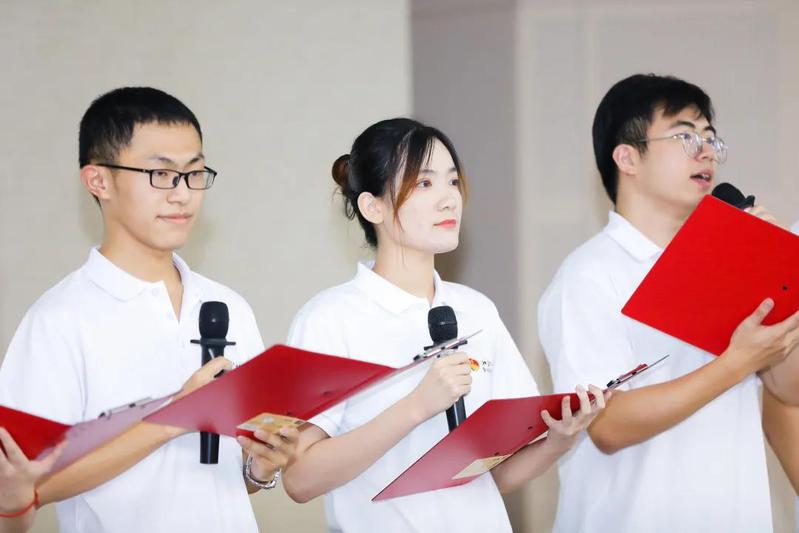学院优秀学生党员代表、“核心价值观进班级”讲师团代表、学生会主席团代表、新生代表等,结合自身经历与理想,带来了以“百年报国志,奋进数学人”为主题的诗朗诵,生动展现了浙大数学人在党和国家的历史背景中展现的科研报国使命与薪火相传精神,抒发了数院学子勇立时代潮头,弘扬光荣传统,赓续红色血脉的使命担当。