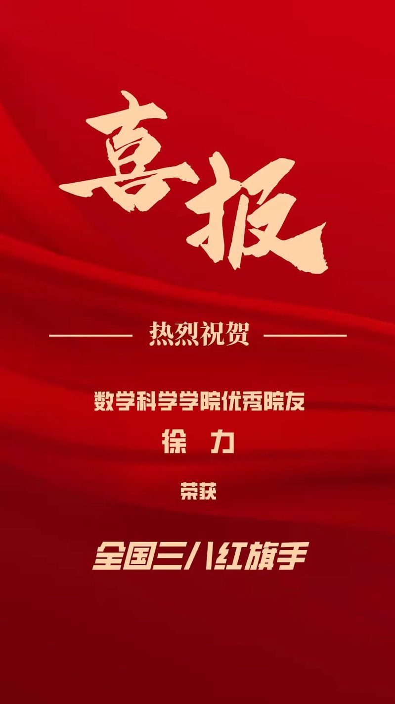 近日,全国妇联公布了2021年度全国三八红旗手标兵、全国三八红旗手、全国三八红旗集体名单。我院优秀校友徐力获评全国三八红旗手!