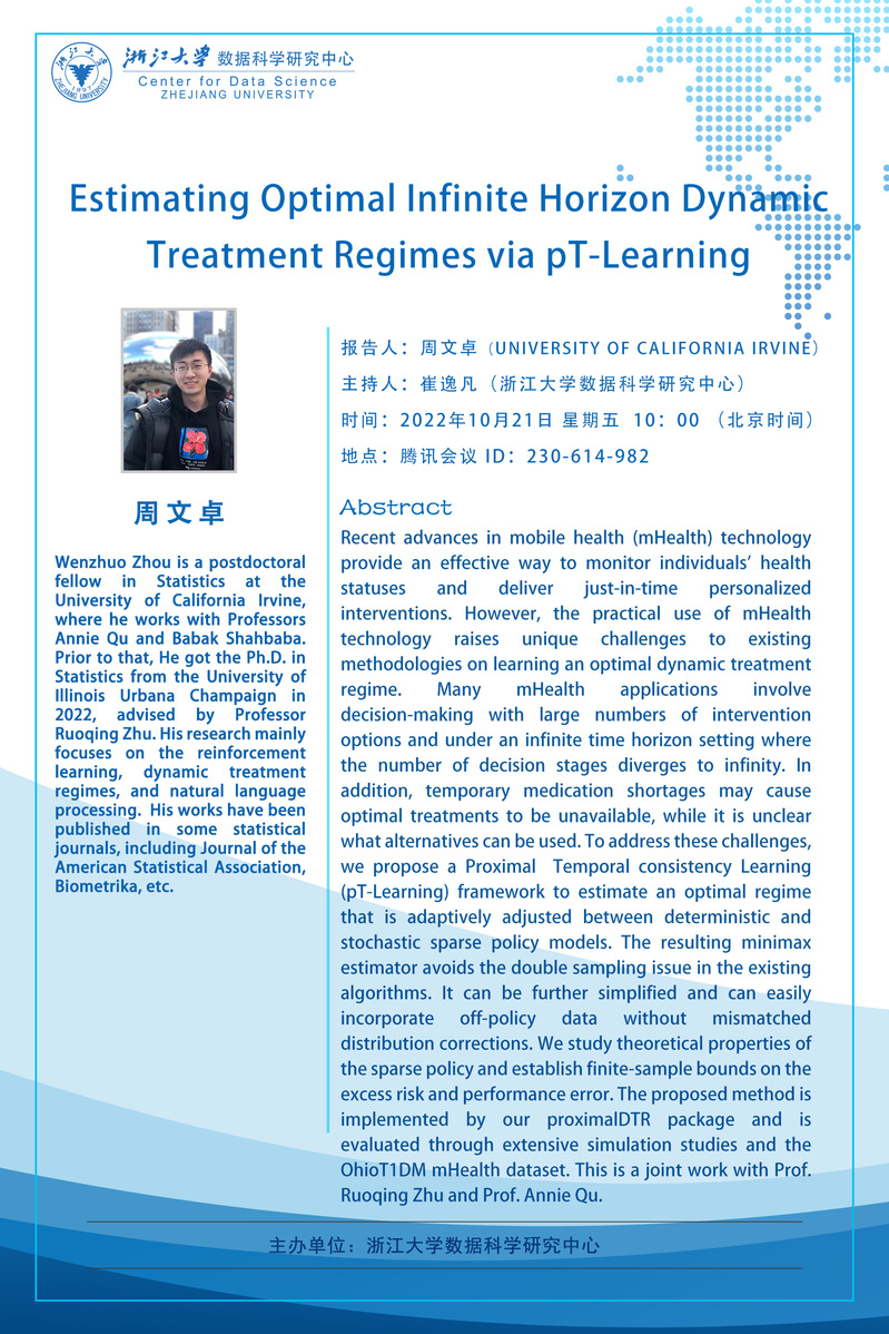 学术科研 学术团队 学术活动 学术会议 学术报告 讨论班 School Colloquium 信息公告 文件汇编 学术报告 米兰网页版 > Estimating Optimal Infinite Horizon Dynamic Treatment Regimes via pT-Learning 来源:米兰(中国) 发布时间:2022-10-21 266