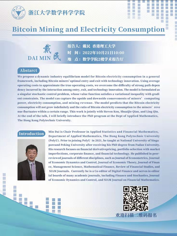 学术科研 学术团队 学术活动 学术会议 学术报告 讨论班 School Colloquium 信息公告 文件汇编 学术报告 米兰网页版 > Bitcoin Mining and Electricity Consumption 来源:米兰(中国) 发布时间:2022-10-21 171