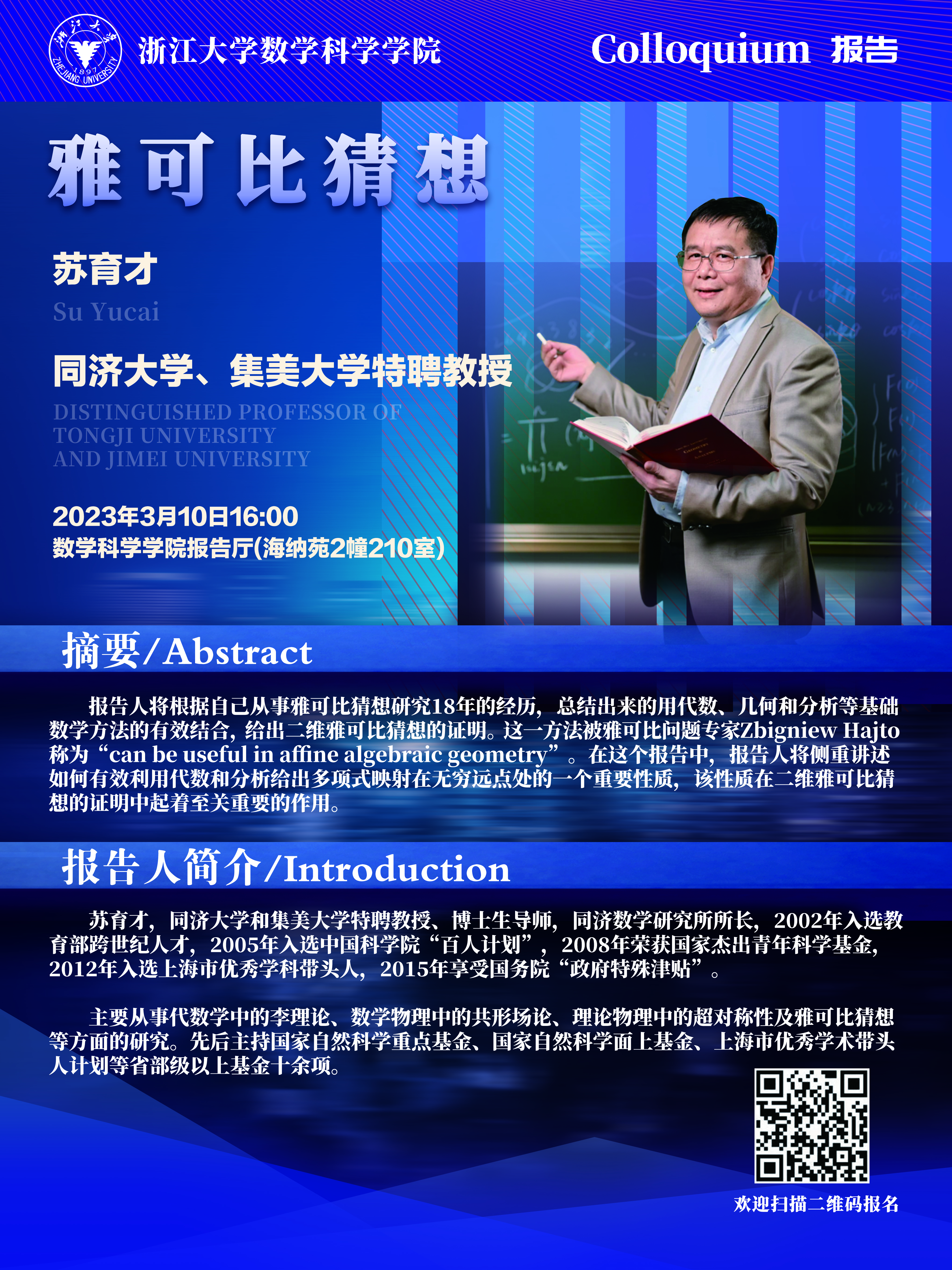 学术科研 学术团队 学术活动 学术会议 学术报告 讨论班 School Colloquium 信息公告 文件汇编 学术报告 米兰网页版 > Colloquium报告——雅可比猜想 来源:米兰(中国) 发布时间:2023-03-06 640