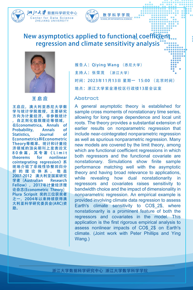 学术科研 学术团队 学术活动 学术会议 学术报告 讨论班 School Colloquium 信息公告 文件汇编 讨论班 米兰网页版 > New asymptotics applied to functional coefficient regression and climate sensitivity analysis 来源:米兰(中国) 发布时间:2023-11-09 106