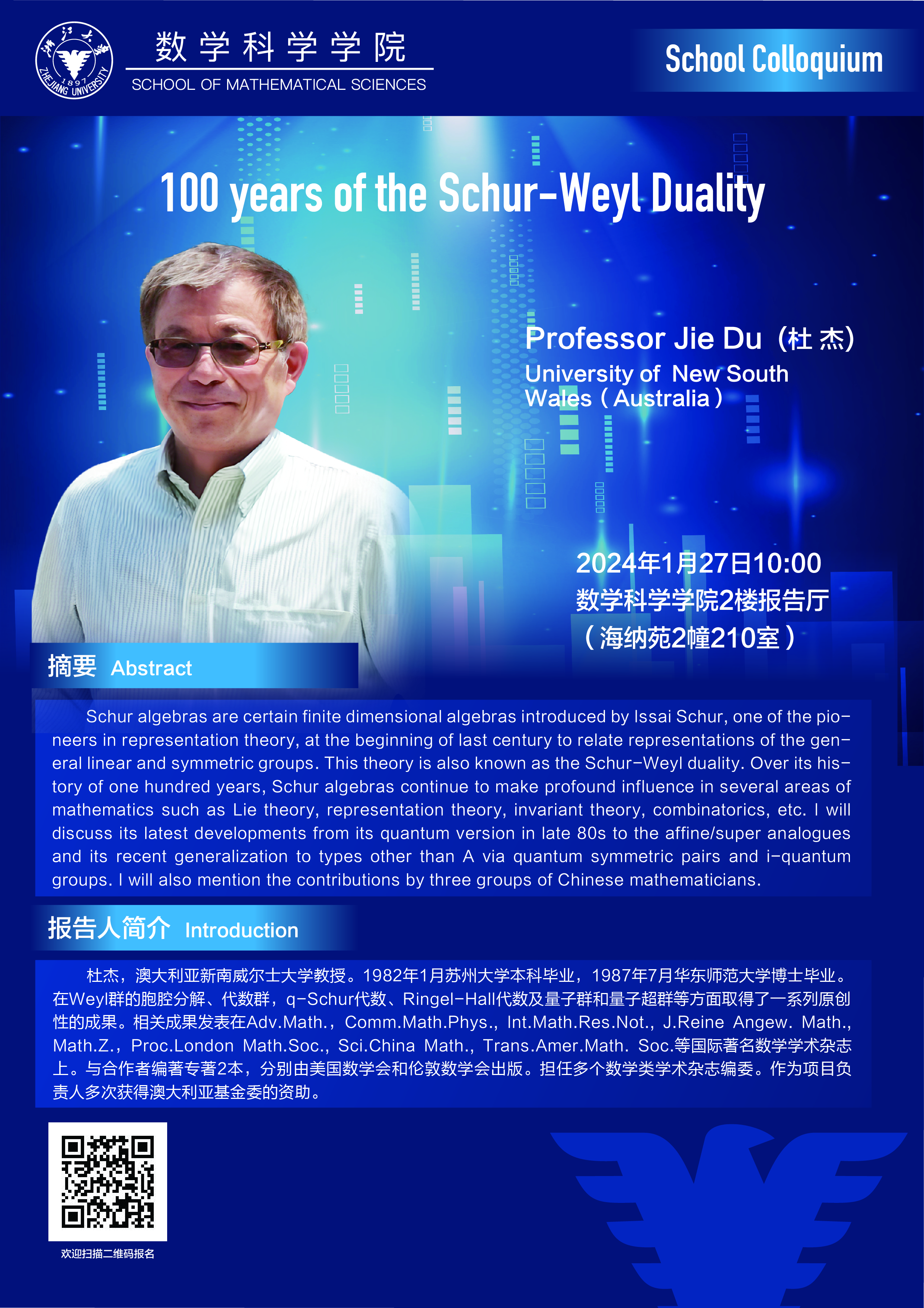 学术科研 学术团队 学术活动 学术会议 学术报告 讨论班 School Colloquium 信息公告 文件汇编 School Colloquium 米兰网页版 > School Colloquium——100 years of the Schur-Weyl Duality 来源:米兰(中国) 发布时间:2024-01-16 443
