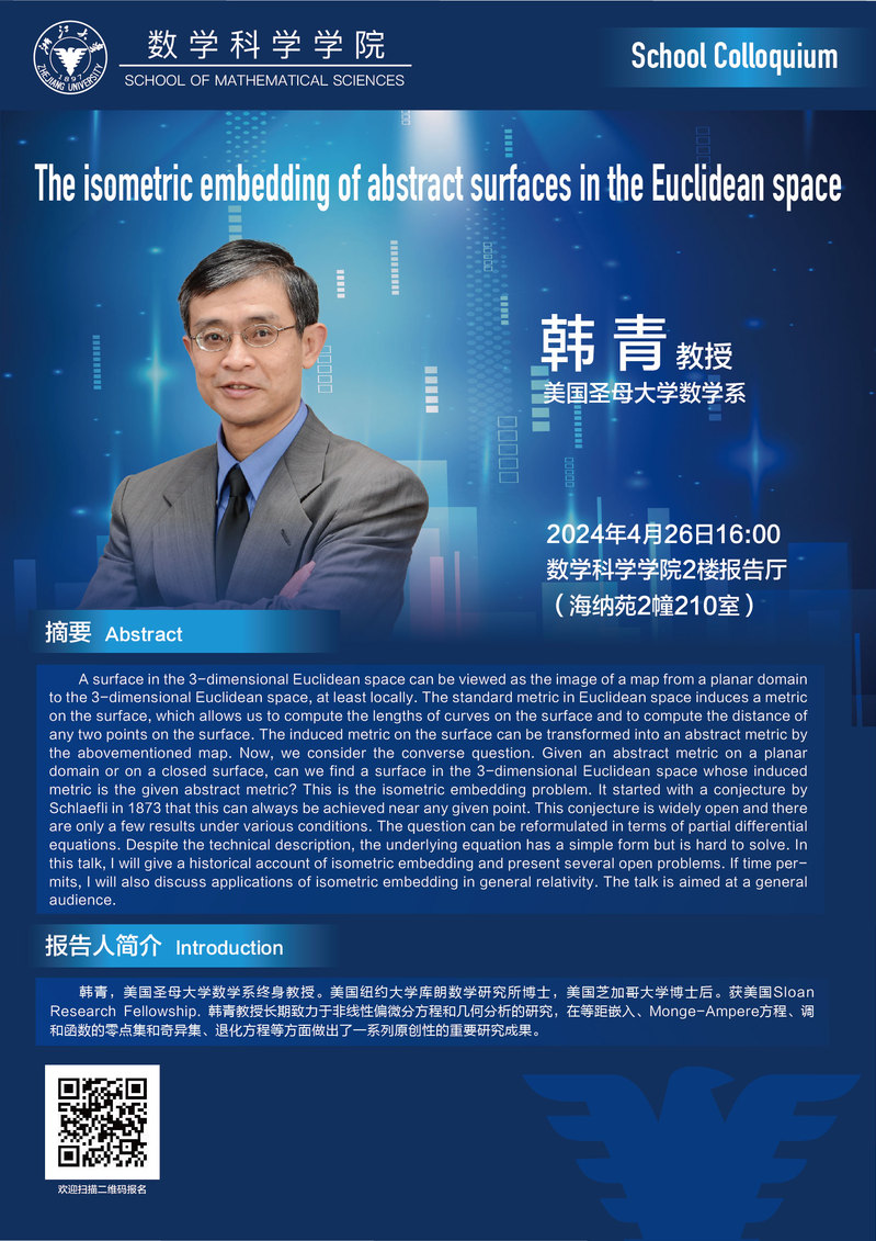 学术科研 学术团队 学术活动 学术会议 学术报告 讨论班 School Colloquium 信息公告 文件汇编 School Colloquium 米兰网页版 > The isometric embedding of abstract surfaces in the Euclidean space 来源:米兰(中国) 发布时间:2024-04-19 106