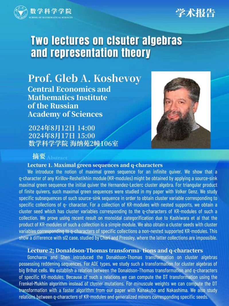 学术科研 学术团队 学术活动 学术会议 学术报告 讨论班 School Colloquium 信息公告 文件汇编 表示论与数论讨论班 米兰网页版 > 代数与表示论讨论班——Two lectures on cluster algebras and representation theory 来源:米兰(中国) 发布时间:2024-08-12 311