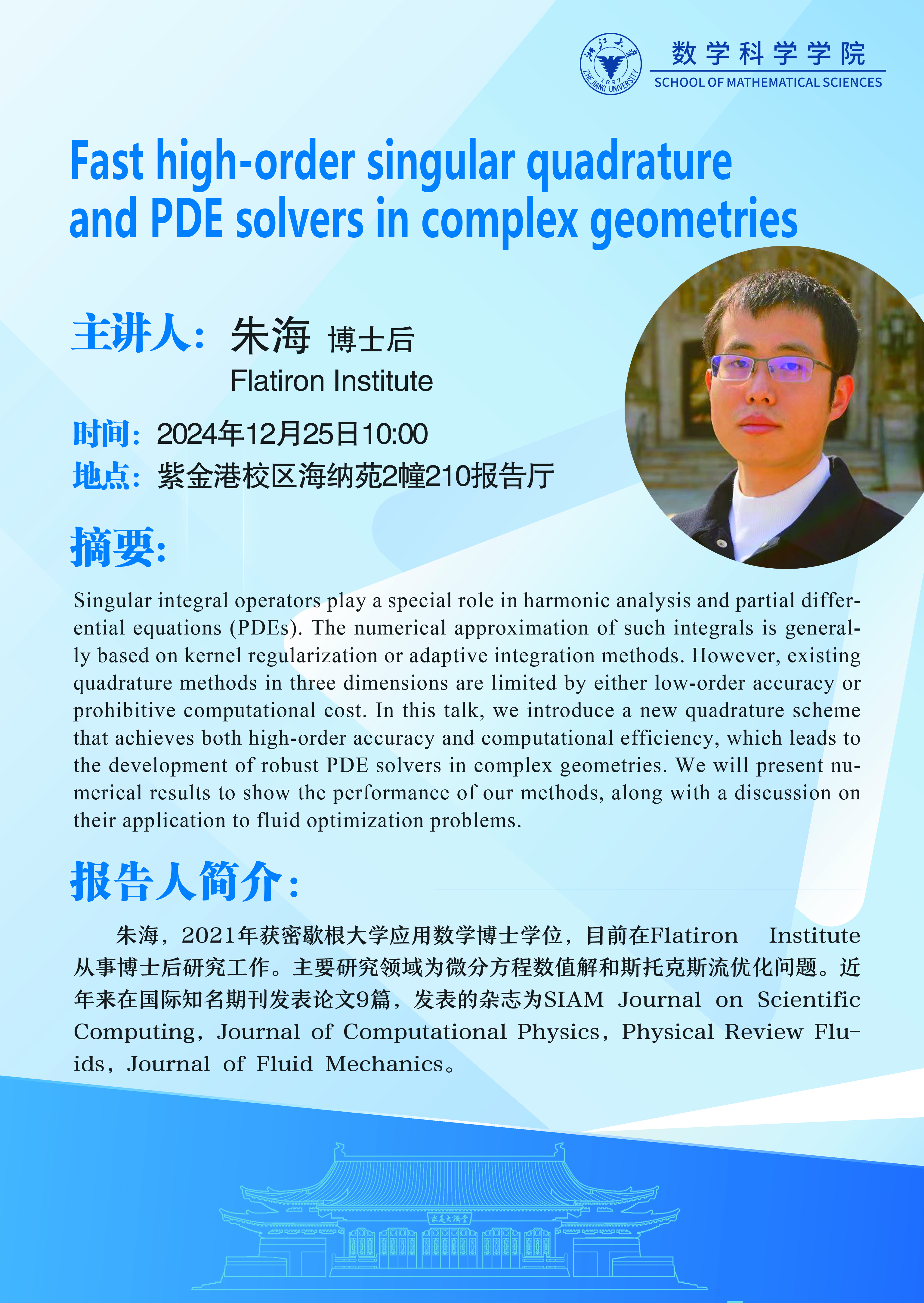 通知公告 通知公告 学术活动 学术会议 新闻图片 院系新闻 院内邮件 2024 米兰网页版 > Fast high-order singular quadrature and PDE solvers in complex geometries 来源:米兰(中国) 发布时间:2024-12-23 150