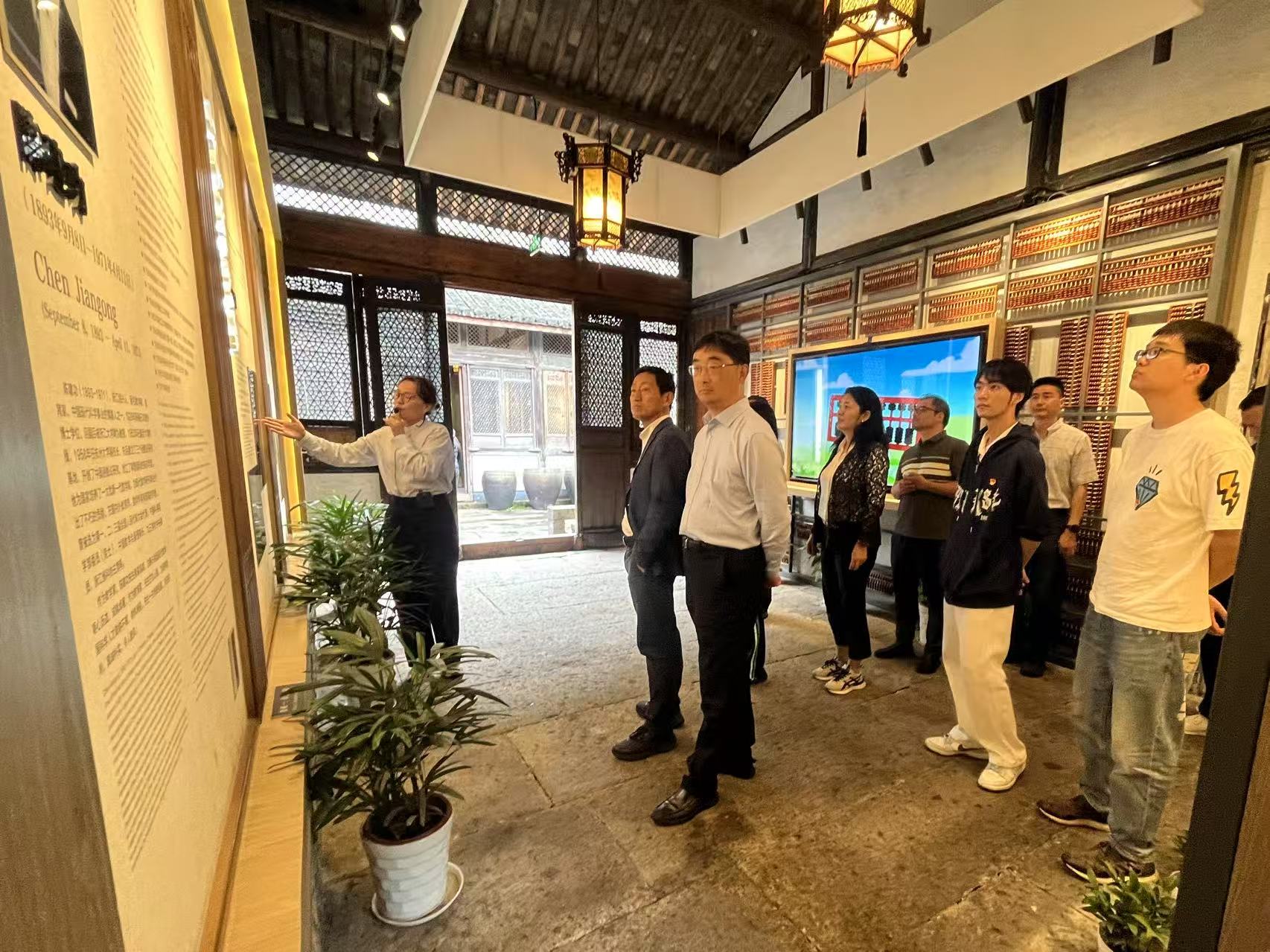 结束了在清风园的现场学习教育活动后,全体成员前往绍兴陈建功旧居参访,旨在学习和弘扬教育家精神、科学家精神,重温浙大数学学科发展的初心使命,赓续“陈苏学派”精神和红色基因,努力承担起新时代建设世界一流大学和优秀数学学科的历史责任。陈建功,著名数学家、教育家,是我国近代数学的奠基人之一,他三次东渡求学,学成后毅然回国,留下名言:“我来求学,是为了我的国家,并非为我自己”,对我国近代数学发展产生了巨大的影响。小小的院落中展陈了陈建功先生为我国数学学科建设鞠躬尽瘁的辉煌人生。在讲解员生动而详实的讲述中,党员们深切地体验了“学成报效祖国、勇攀学术高峰、育人薪火相传”陈苏学派精神和“学高为师、身正为范”的“大先生”精神。