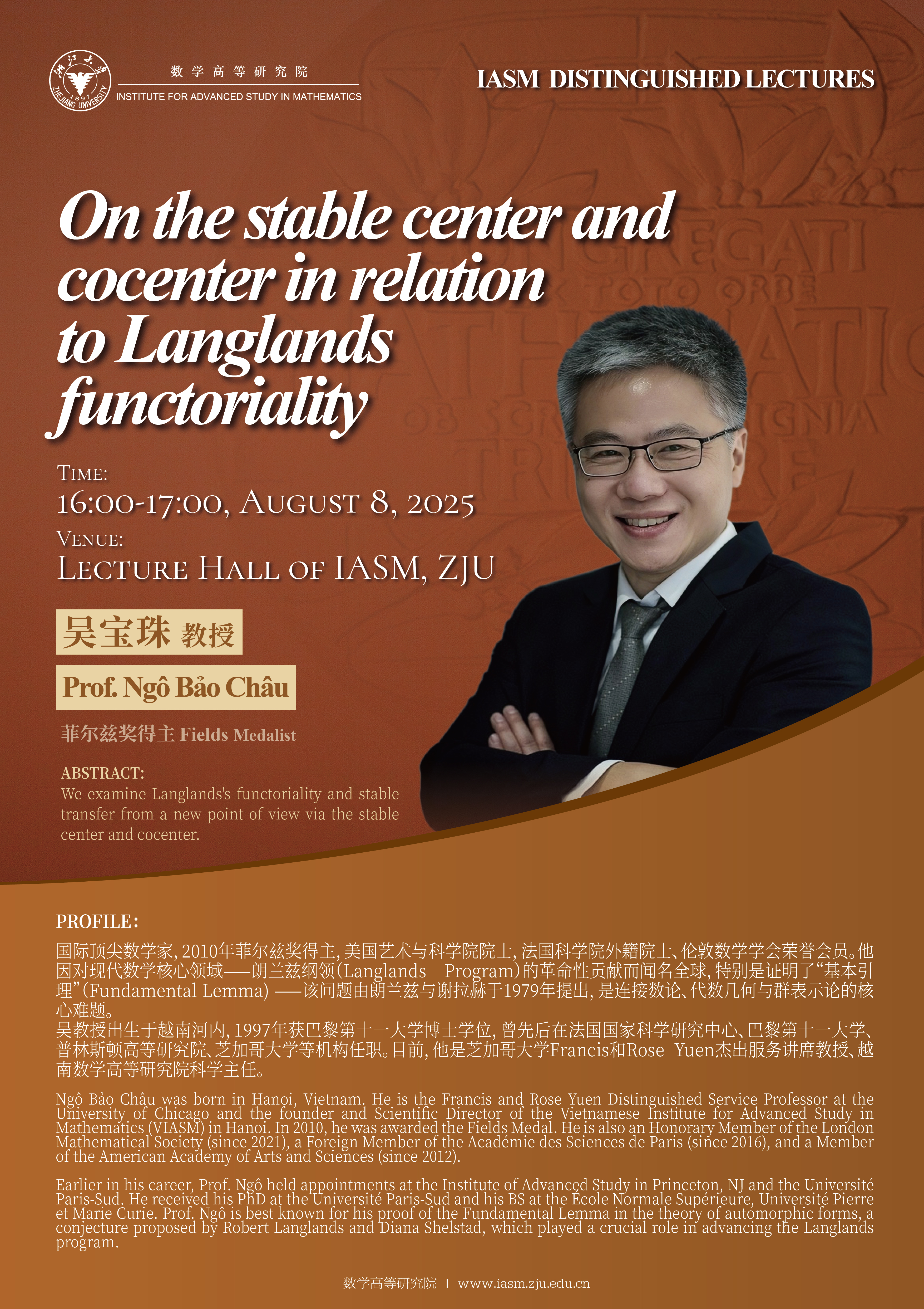 学术科研 学术团队 学术活动 学术会议 学术报告 讨论班 School Colloquium 信息公告 文件汇编 学术活动 米兰网页版 > IASM DISTINGUISHED LECTURES——On the stable center and cocenter in relation to Langlands functoriality 来源:米兰(中国) 发布时间:2025-08-08 377