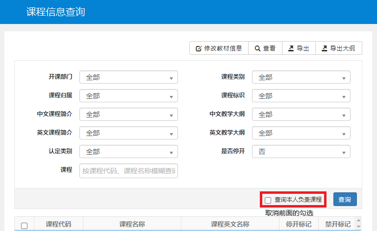 本科生 信息公告 教研动态 代数和几何系列 分析和方程系列 统计学系列 信息与计算科学系列 微积分系列 线性代数系列 高等数学系列 微分方程与复变函数系列 其他 学籍管理 实践教学 对外交流 培养方案 政策文件 会议纪要 教研动态 教研动态 米兰网页版 > 请登录“教学管理信息服务平台”(http://zdbk.zju.edu.cn):点击信息查询→课程信息查看→输入课程代码或者名称→点击查询(教师查询时请取消勾选“查询本人负责课程”选项),即可查看各课程的详细信息(包括教学大纲、课程类别、课程归属、开课院系、学时和学分等)。具体操作流程: